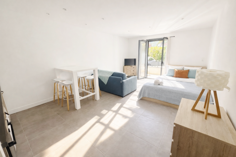 Situé Avenue du Pont de l’Orta, dans une résidence de standing récente, Un appartement comprenant une entrée, un grand séjour/chambre ouvert sur cuisine équipée, une salle de bains/wc et une terrasse Surface habitable : 33 m² + Terrasse : 7…
