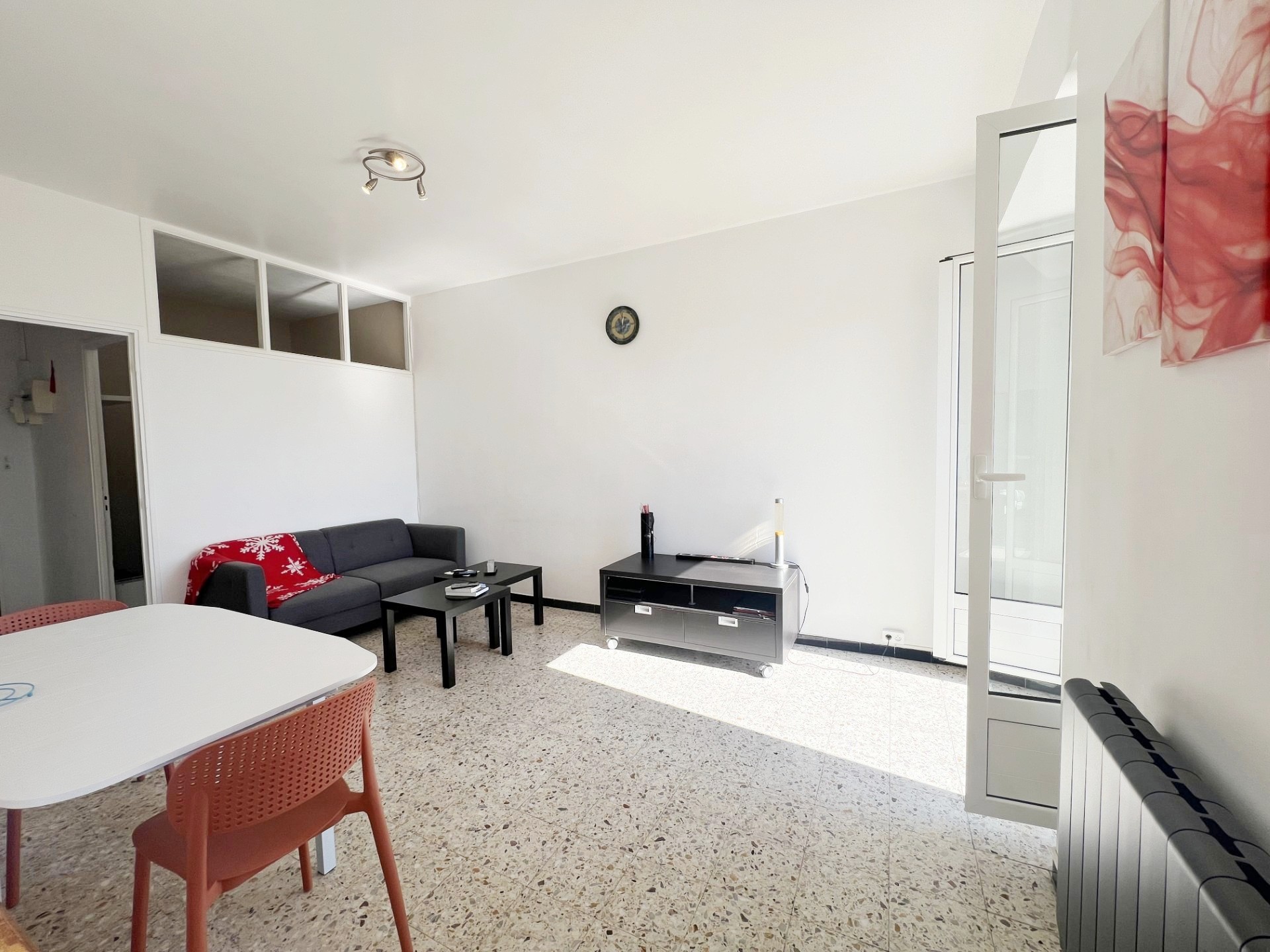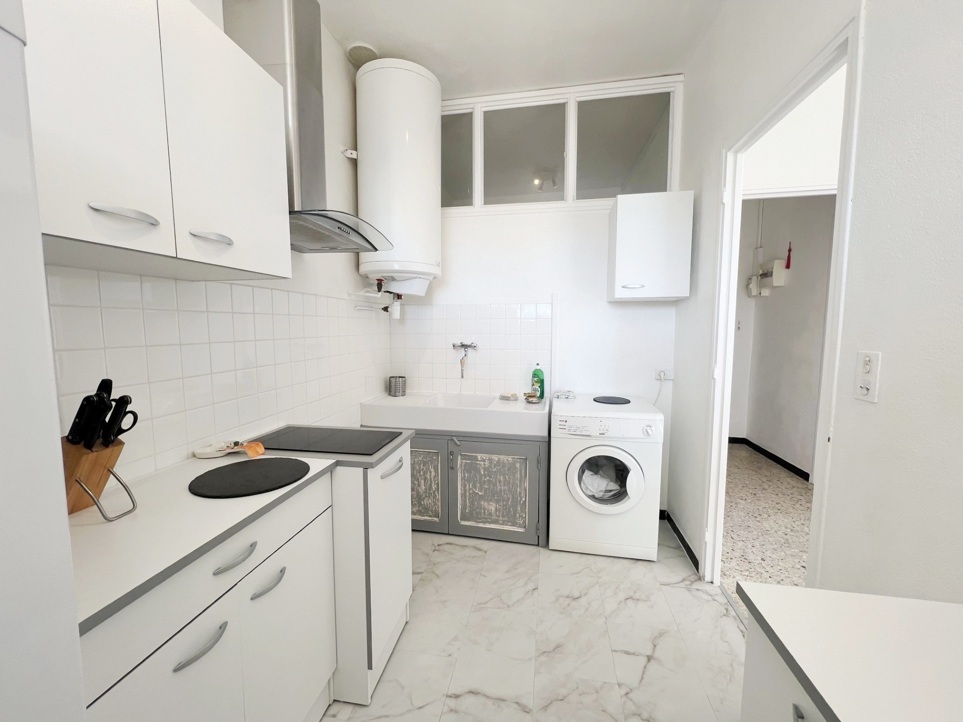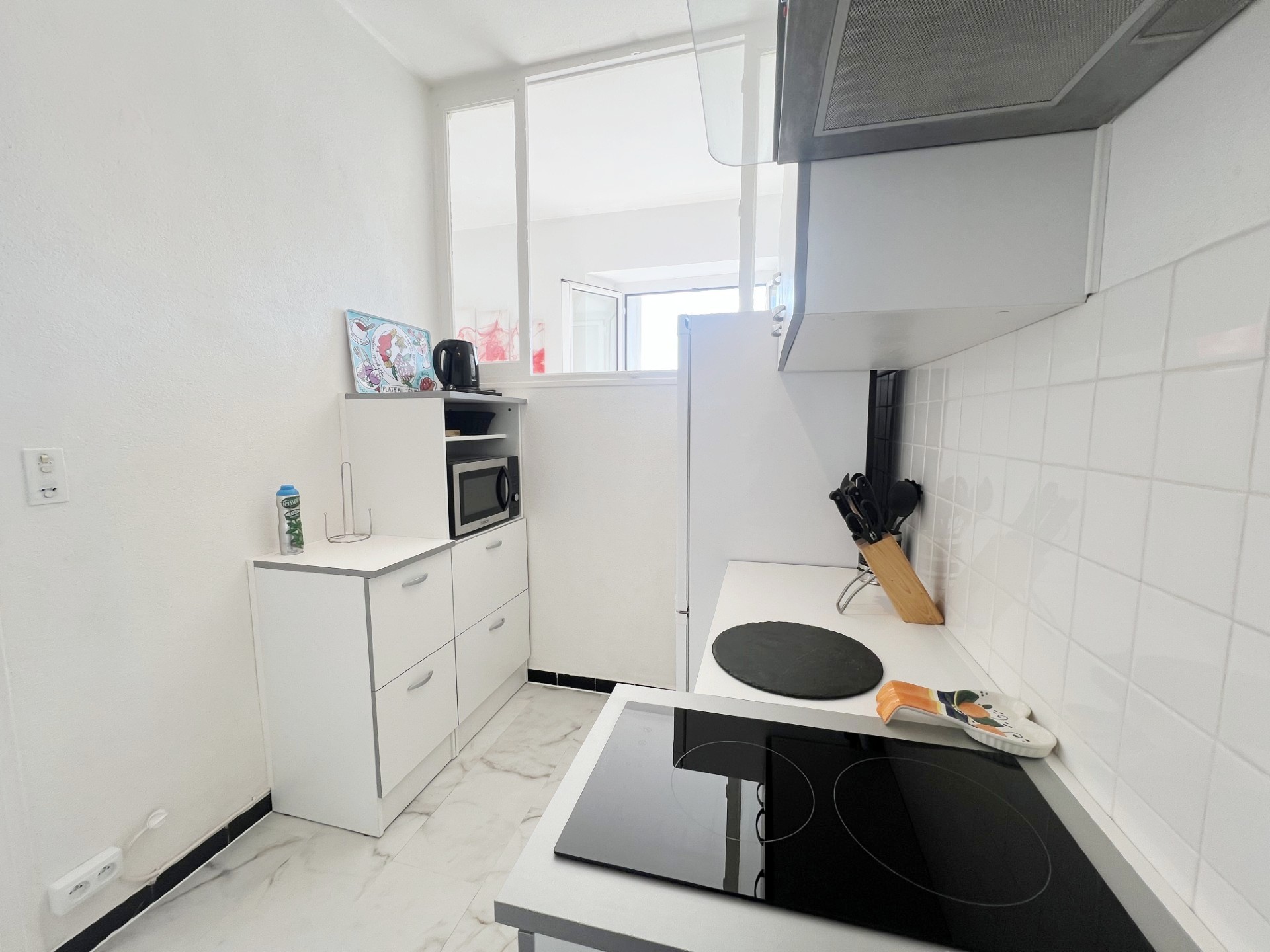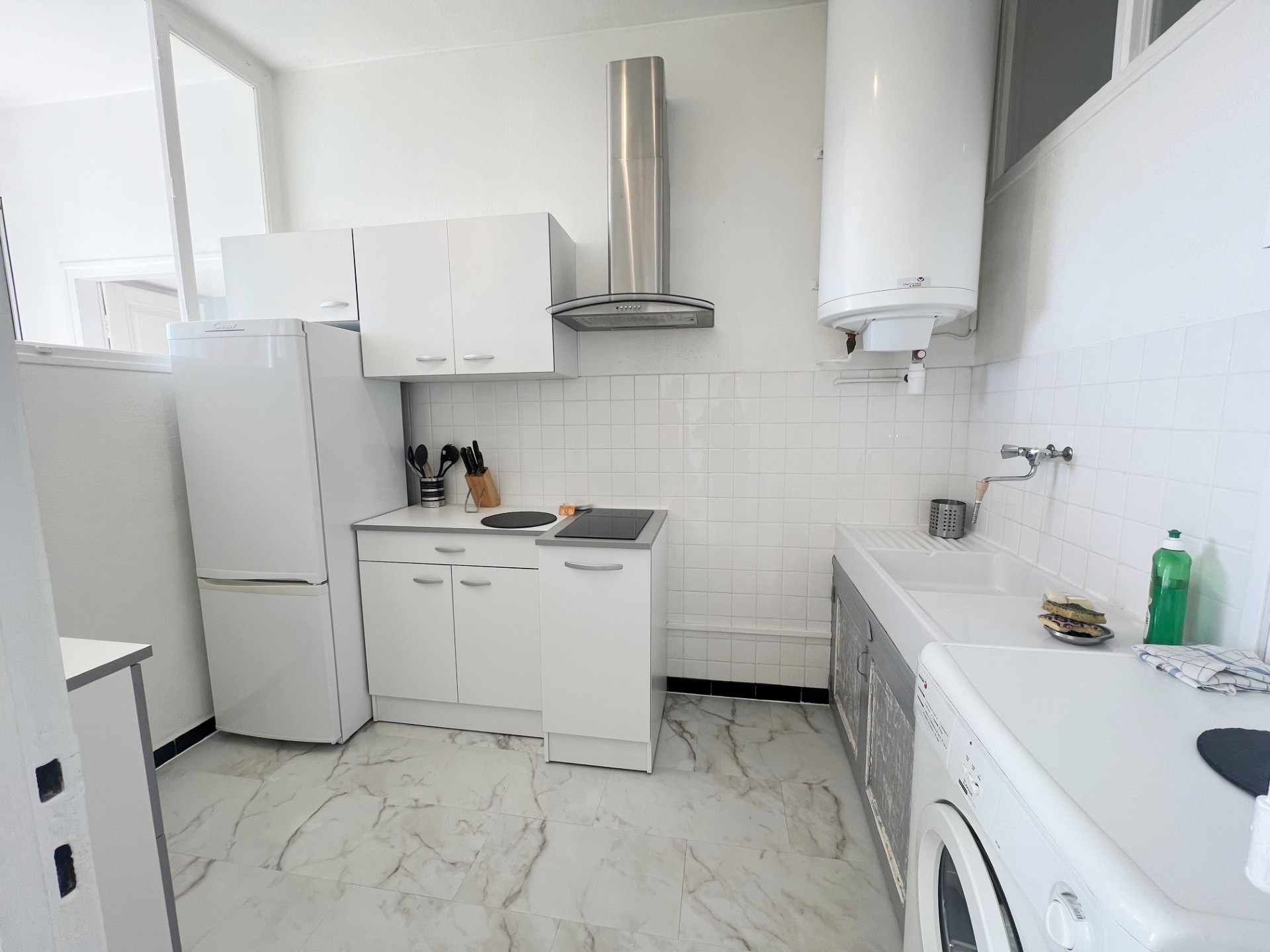 Entièrement meublé et équipé : canapé, lit, armoires, réfrigérateur/congélateur, plaque de cuisson, micro-onde, machine à laver …