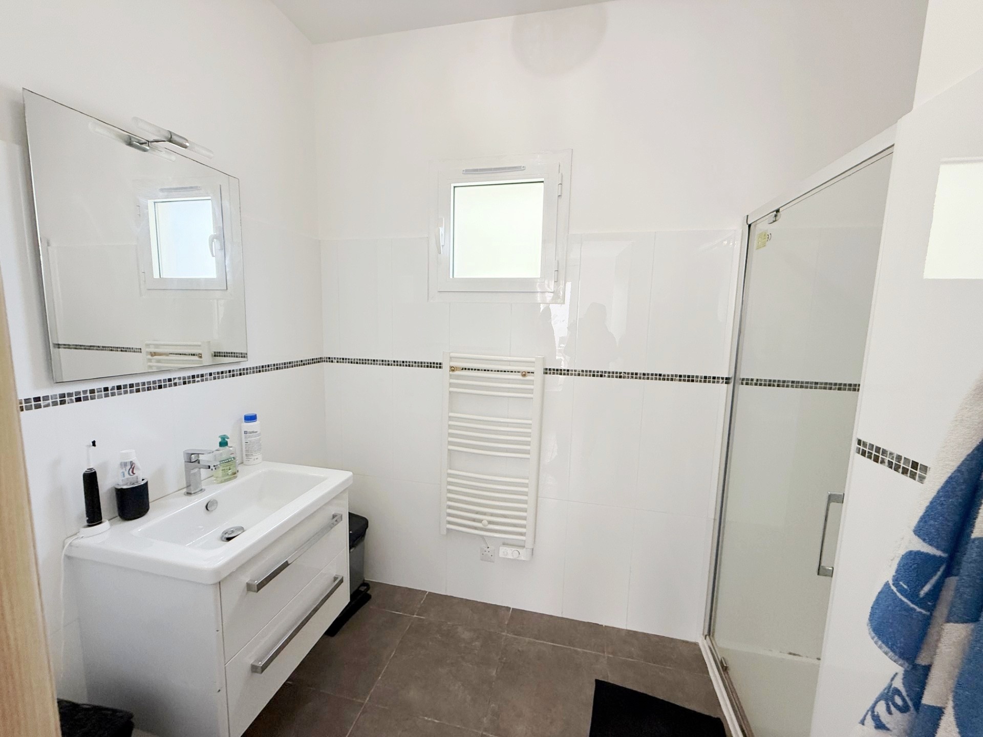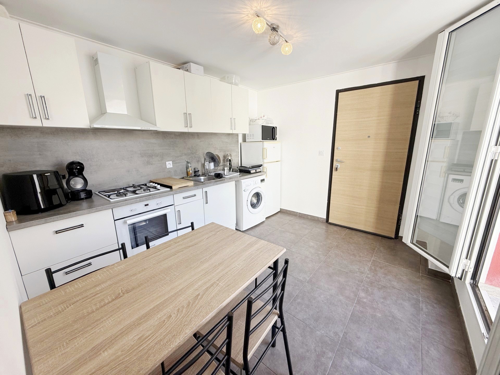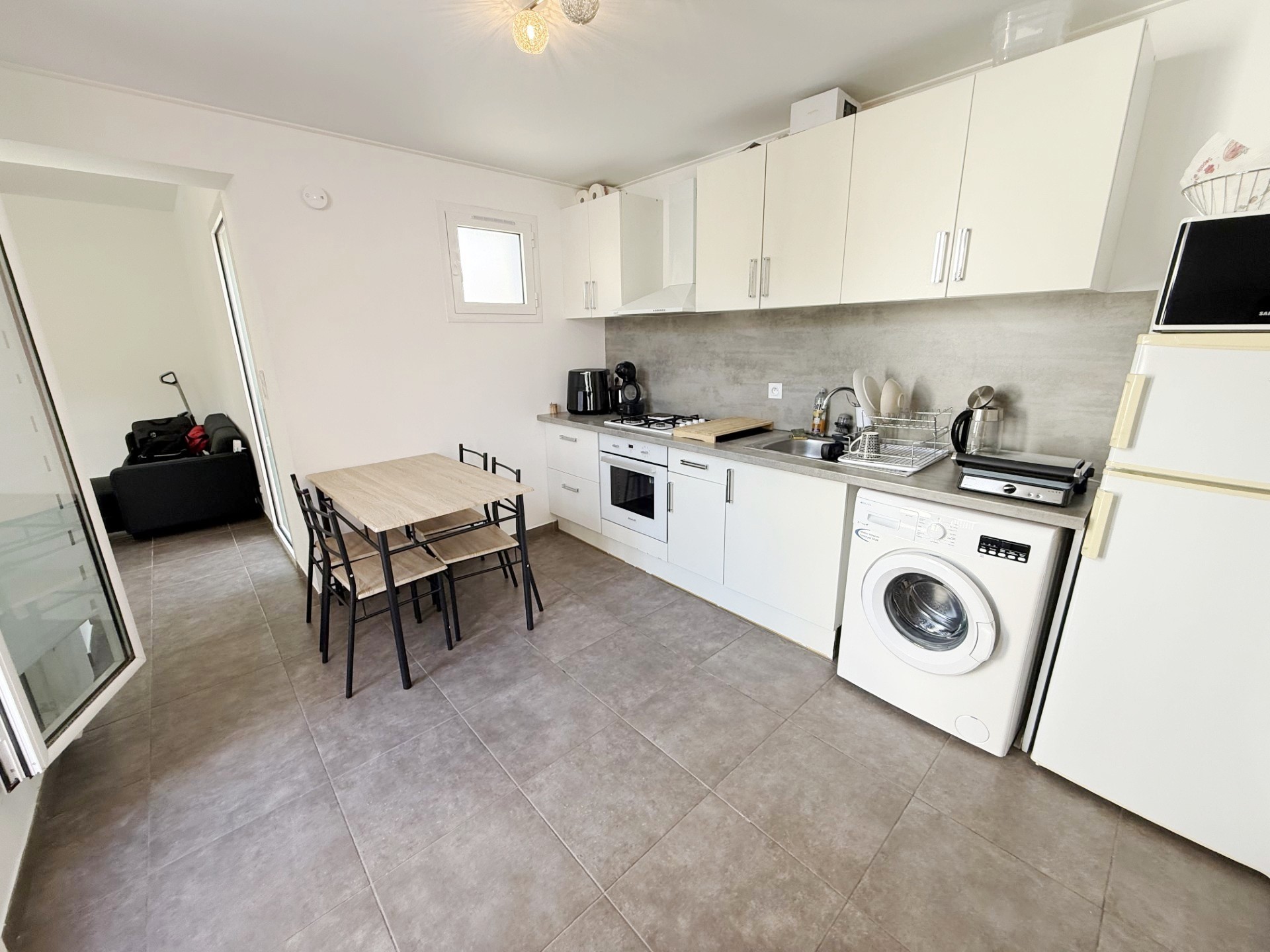Meublé et équipé : canapé, lit, penderies, cuisine entièrement équipée (plan de travail, placards, plaque de cuisson, four, micro-onde…), machine à laver …