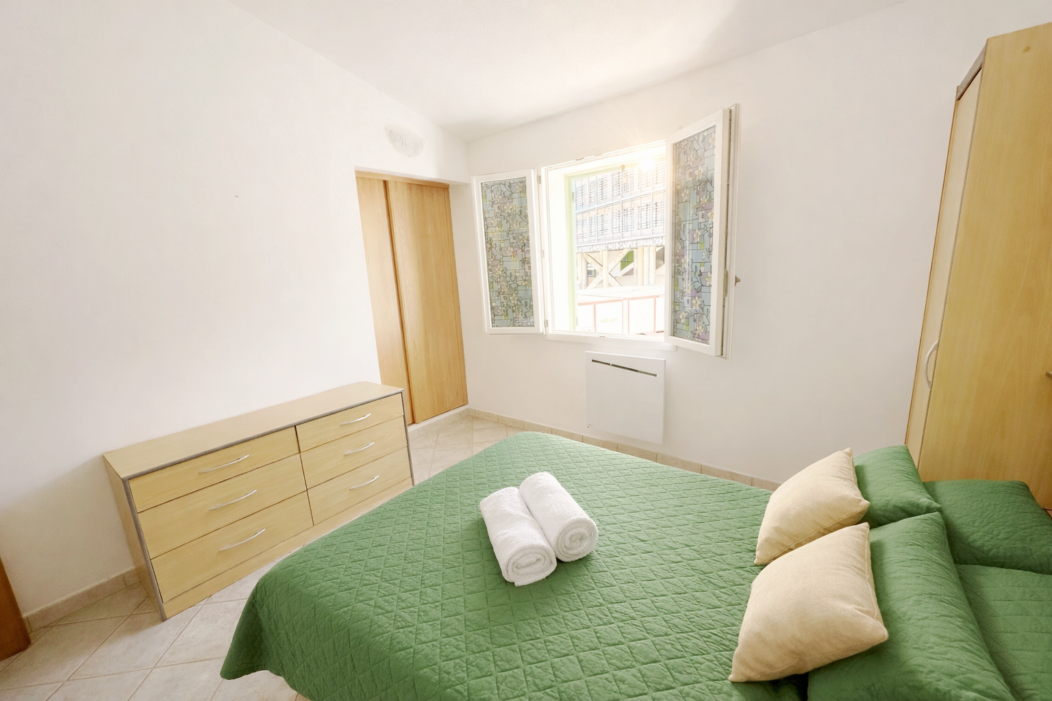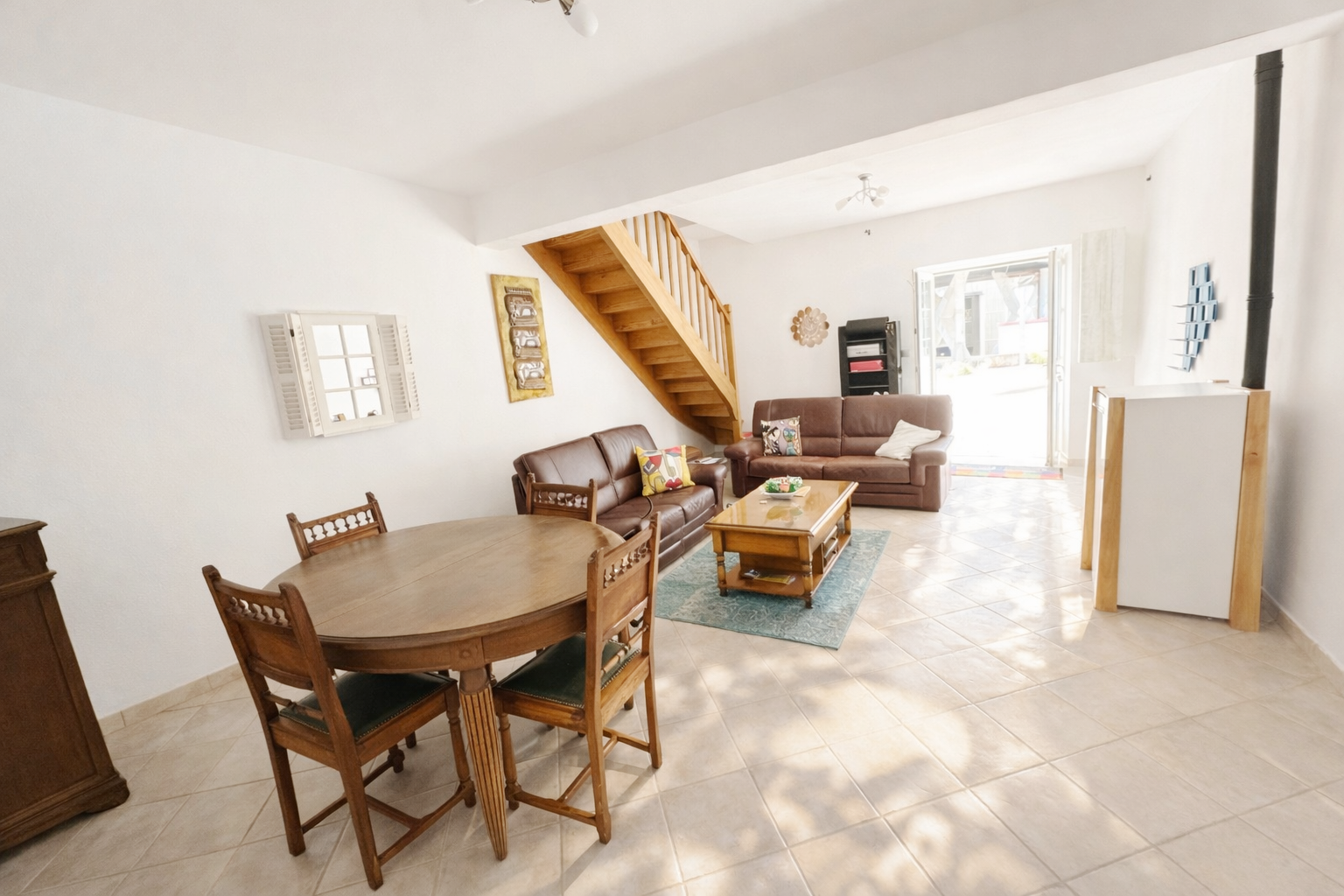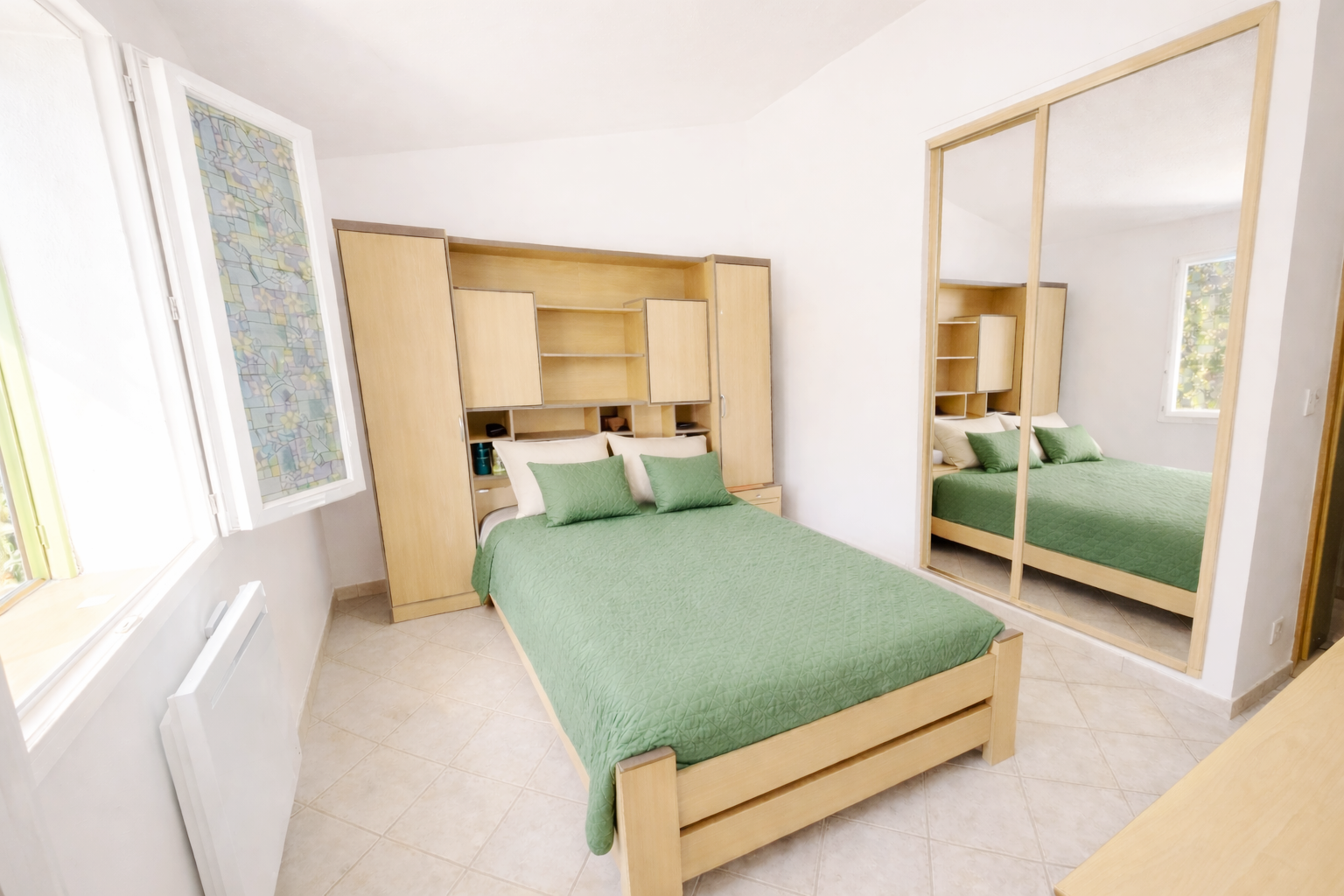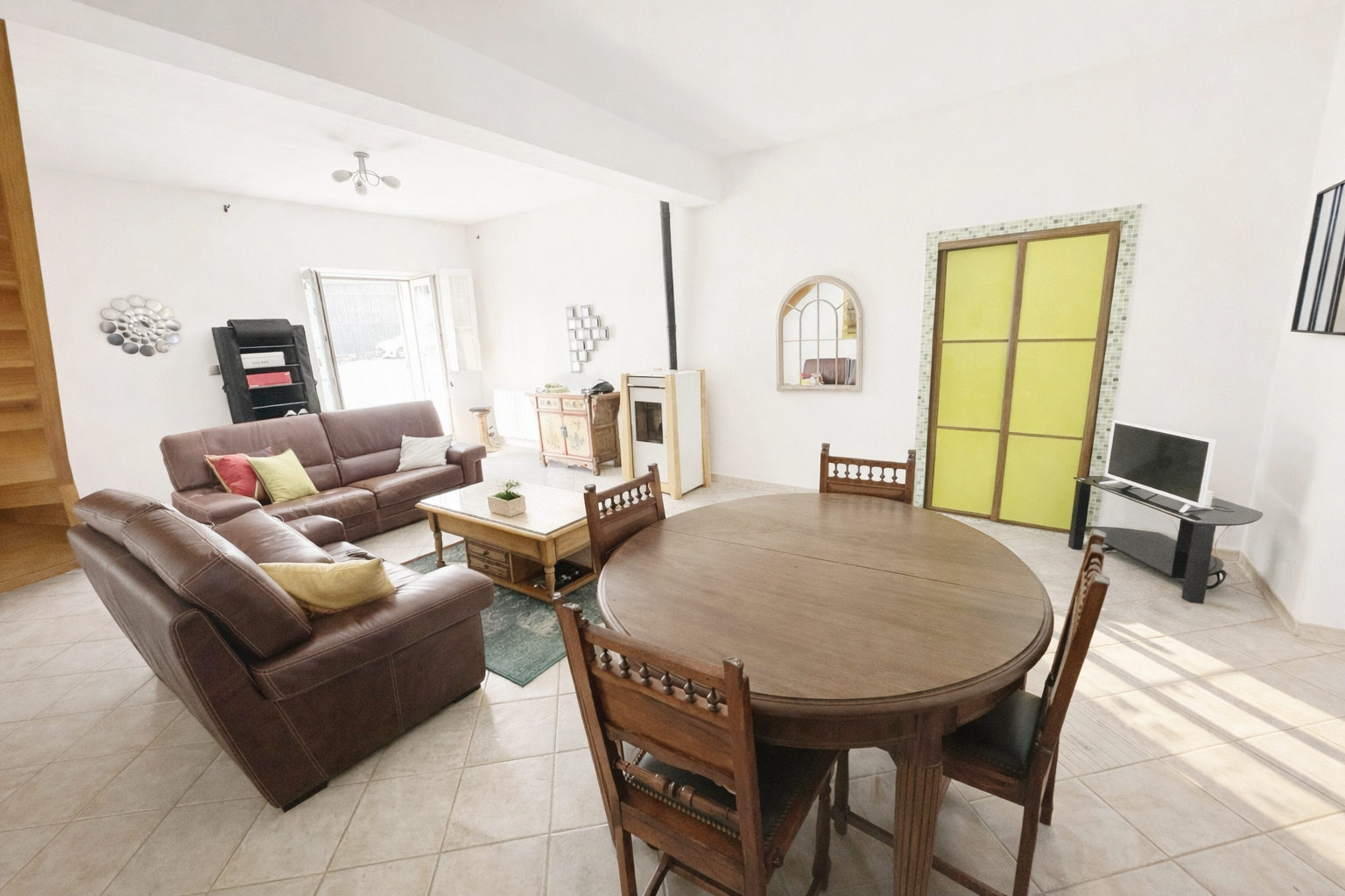 Fenêtres double vitrage, Chauffages à inertie basse consommation, poêle à granules, Grands placards muraux