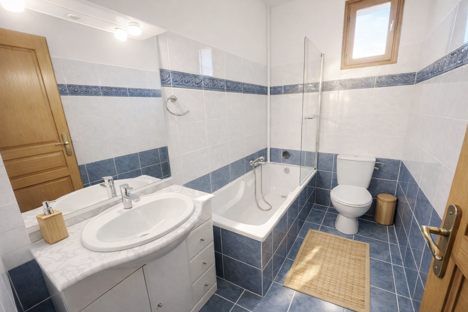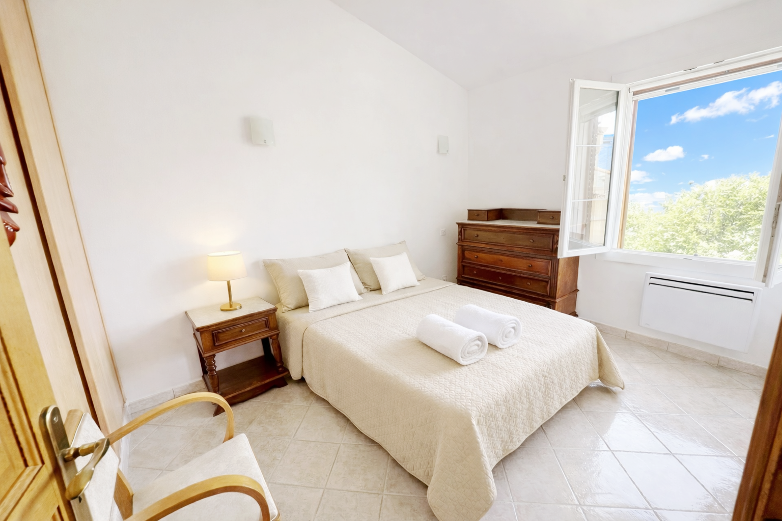 Entièrement meublé et équipé: canapés, lits, armoires, bureaux, réfrigérateur/congélateur, four, lave-vaisselle, lave-linge, TV …