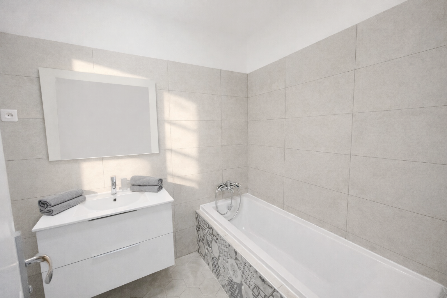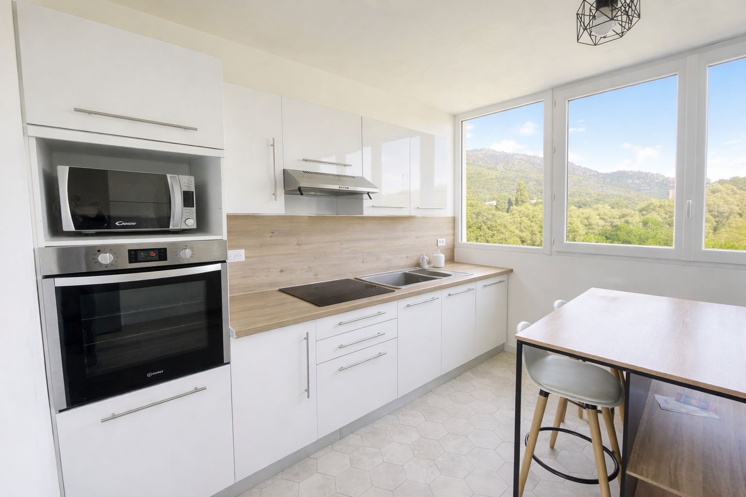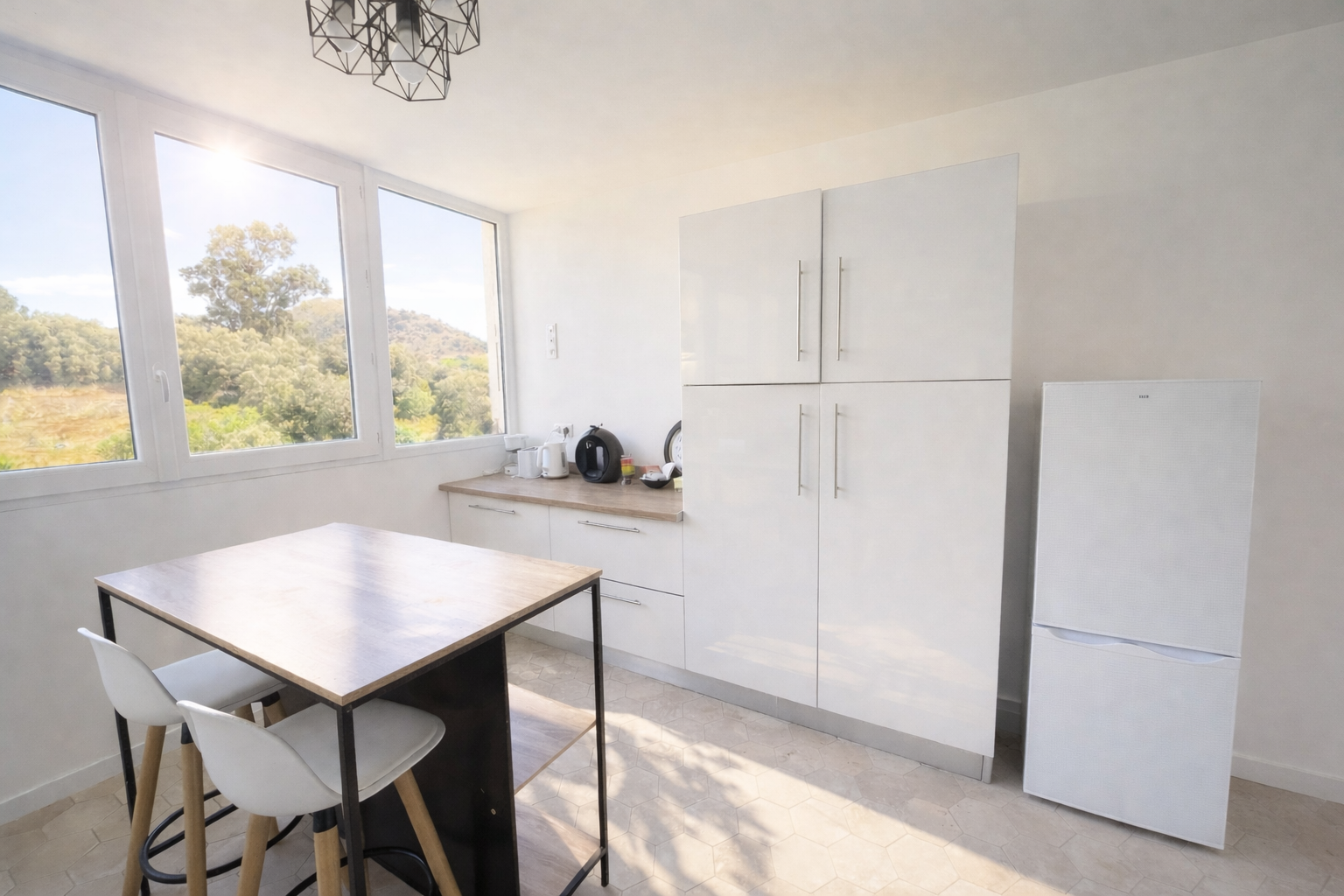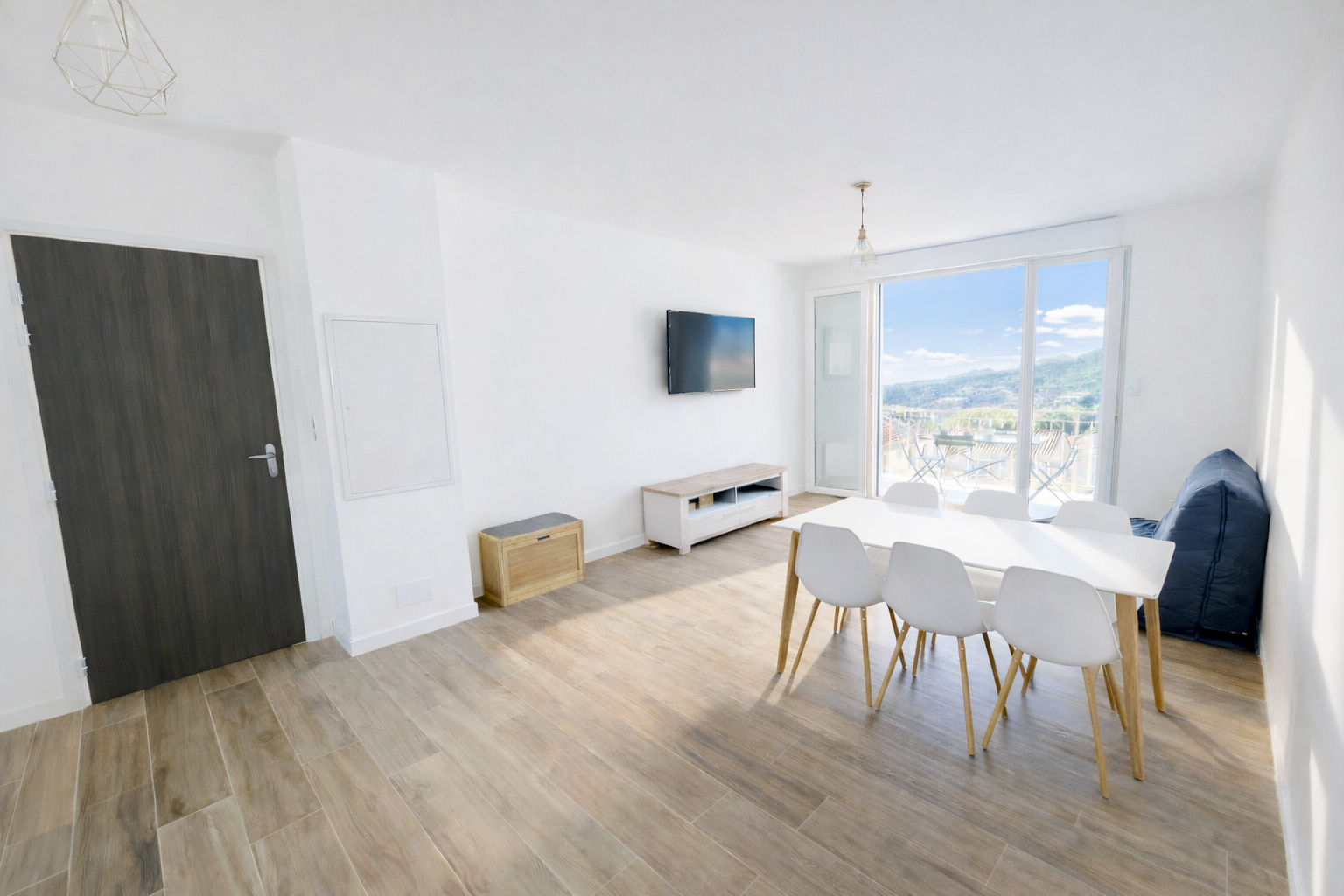 Un appartement de type T3 entièrement refait à neuf comprenant un vaste séjour ouvert sur cuisine équipée, 2 chambres, une salle de bains, un wc séparé et une terrasse