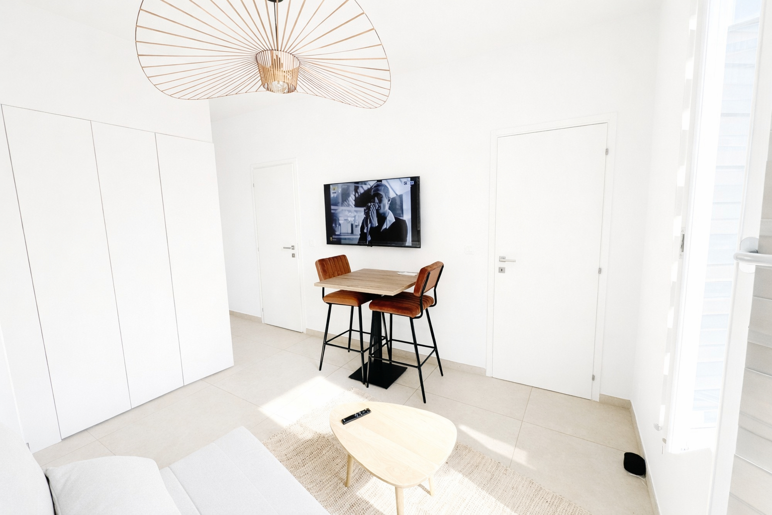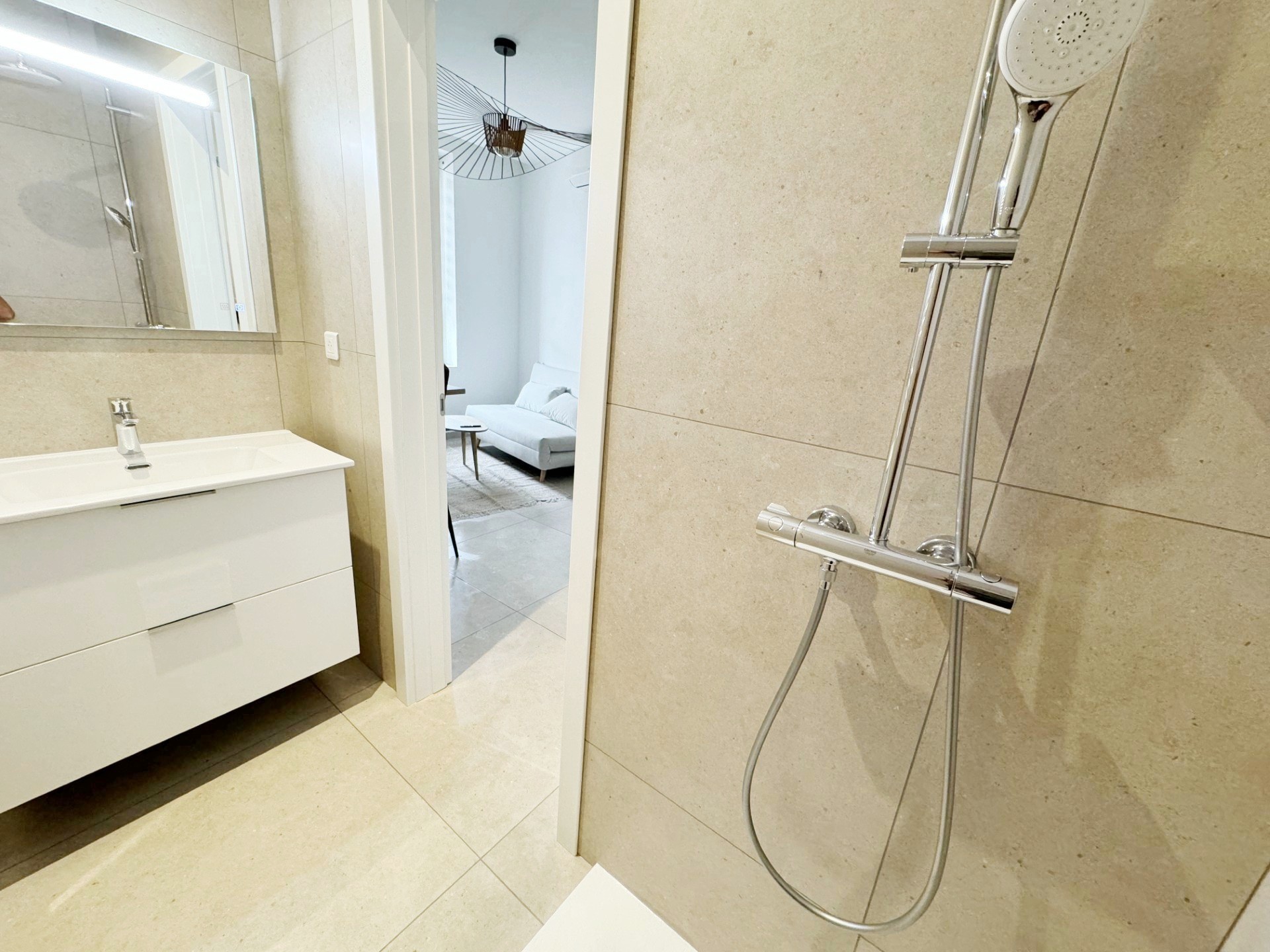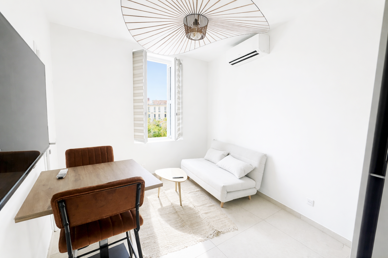 Entièrement meublé et équipé : canapé, lit, réfrigérateur, four, micro-onde, grandes télés, machine à laver, sèche-linge…