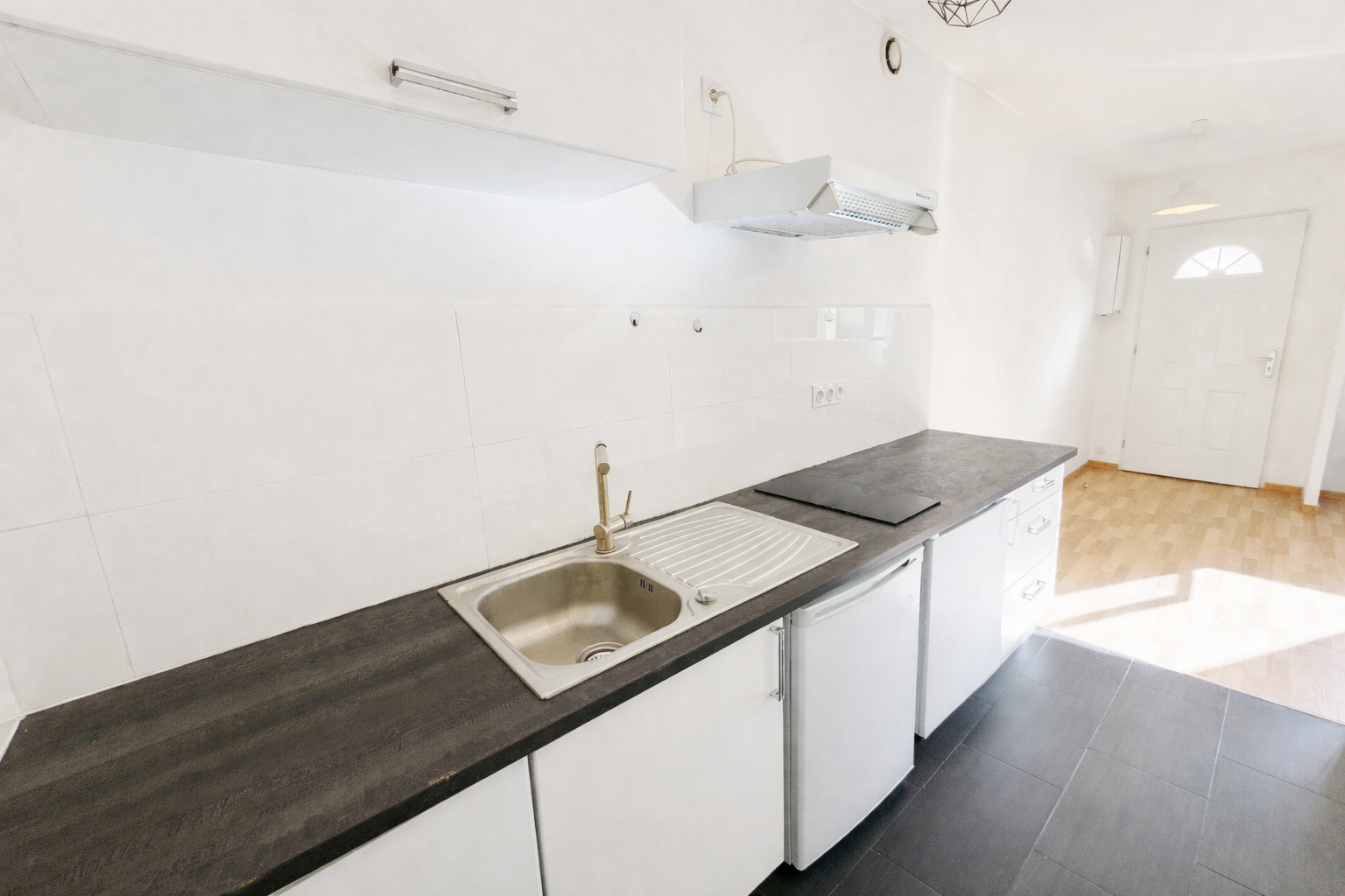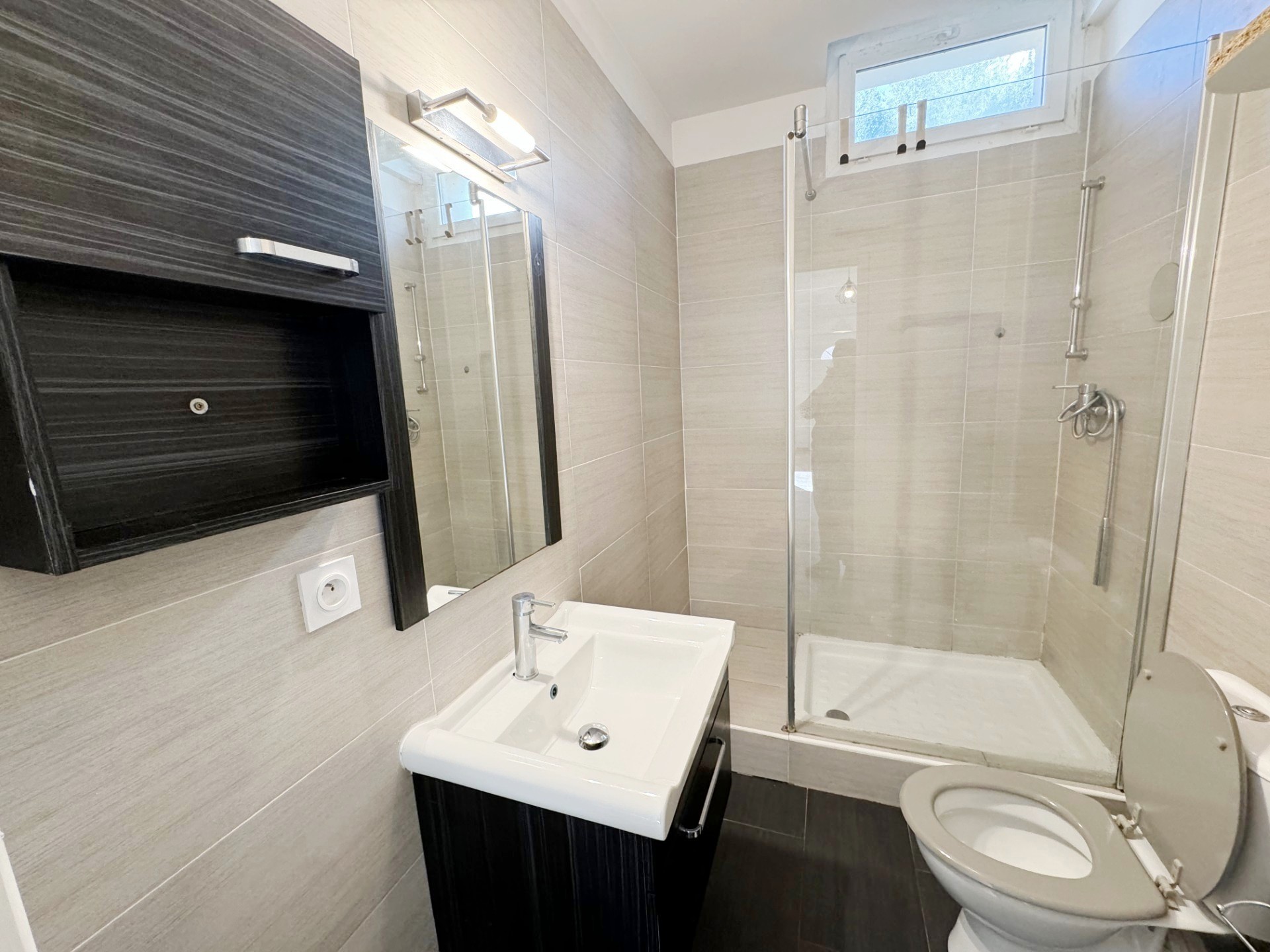 Un appartement de type T2 comprenant une entrée, un séjour ouvert sur cuisine, une chambre et une salle de bains/wc