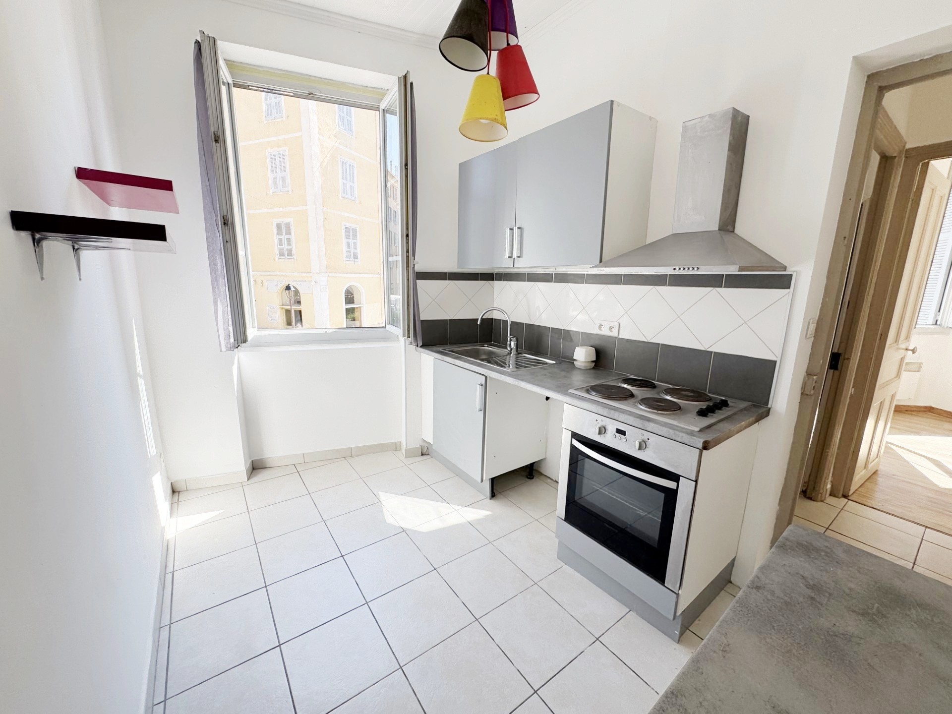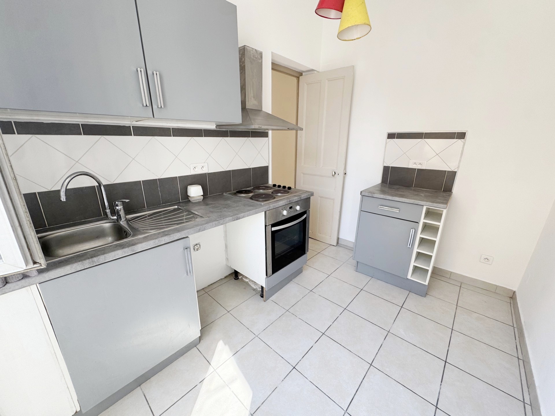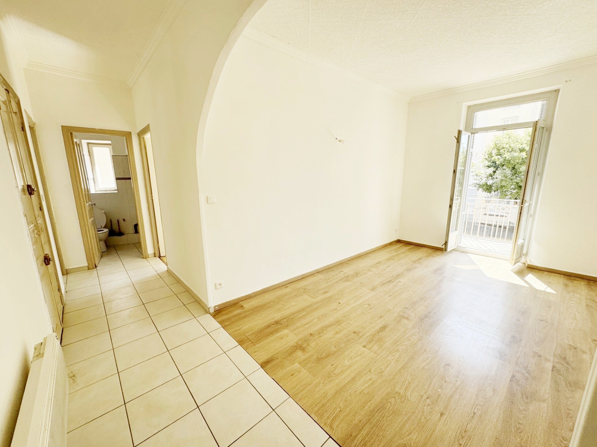 Un appartement de type T3 comprenant une entrée, un séjour, une cuisine équipée, 2 chambres, une salle de bains/wc et un balcon.