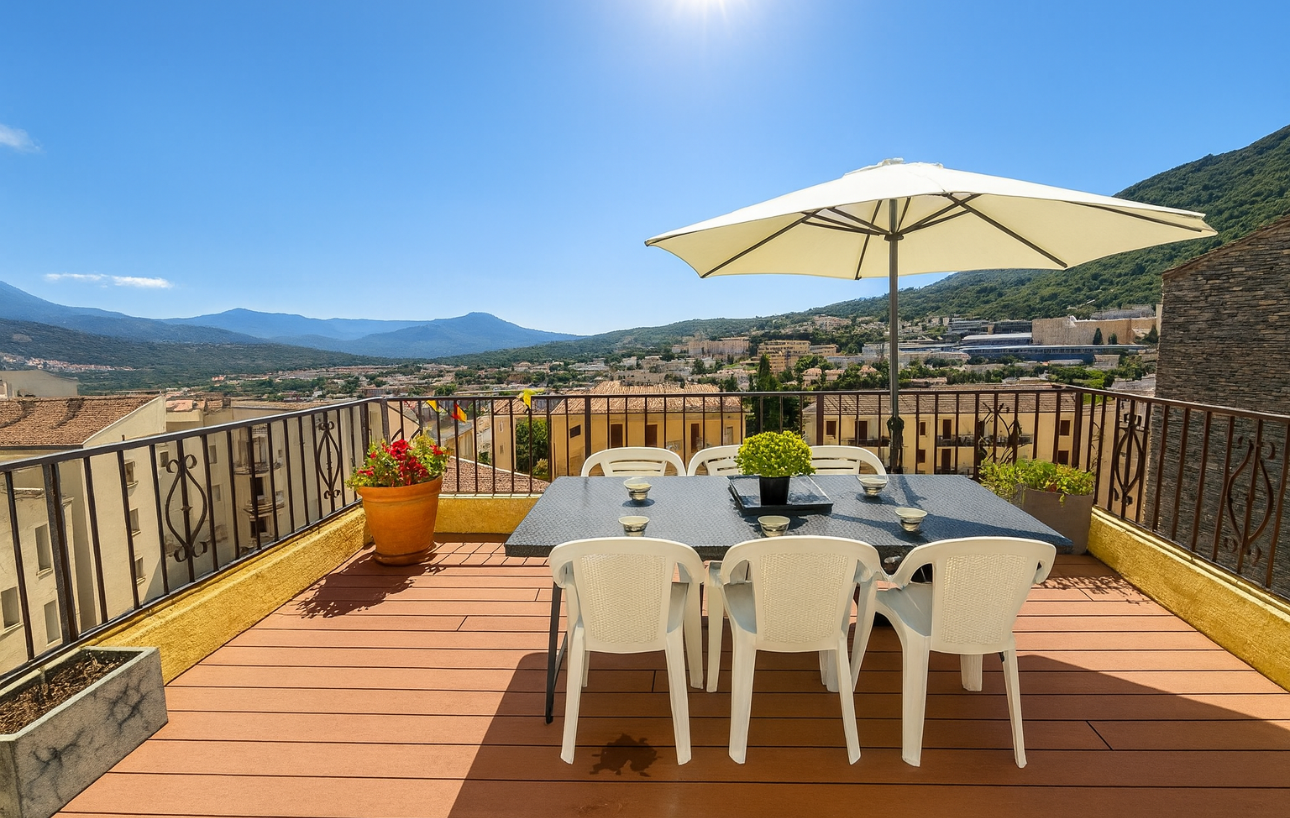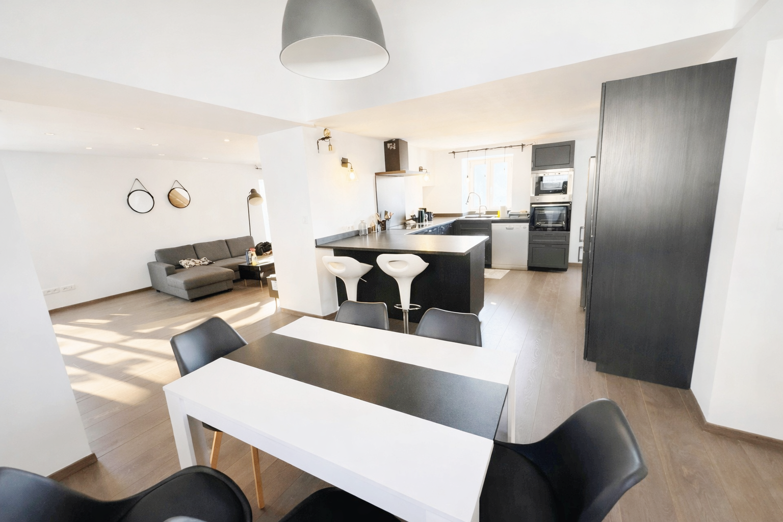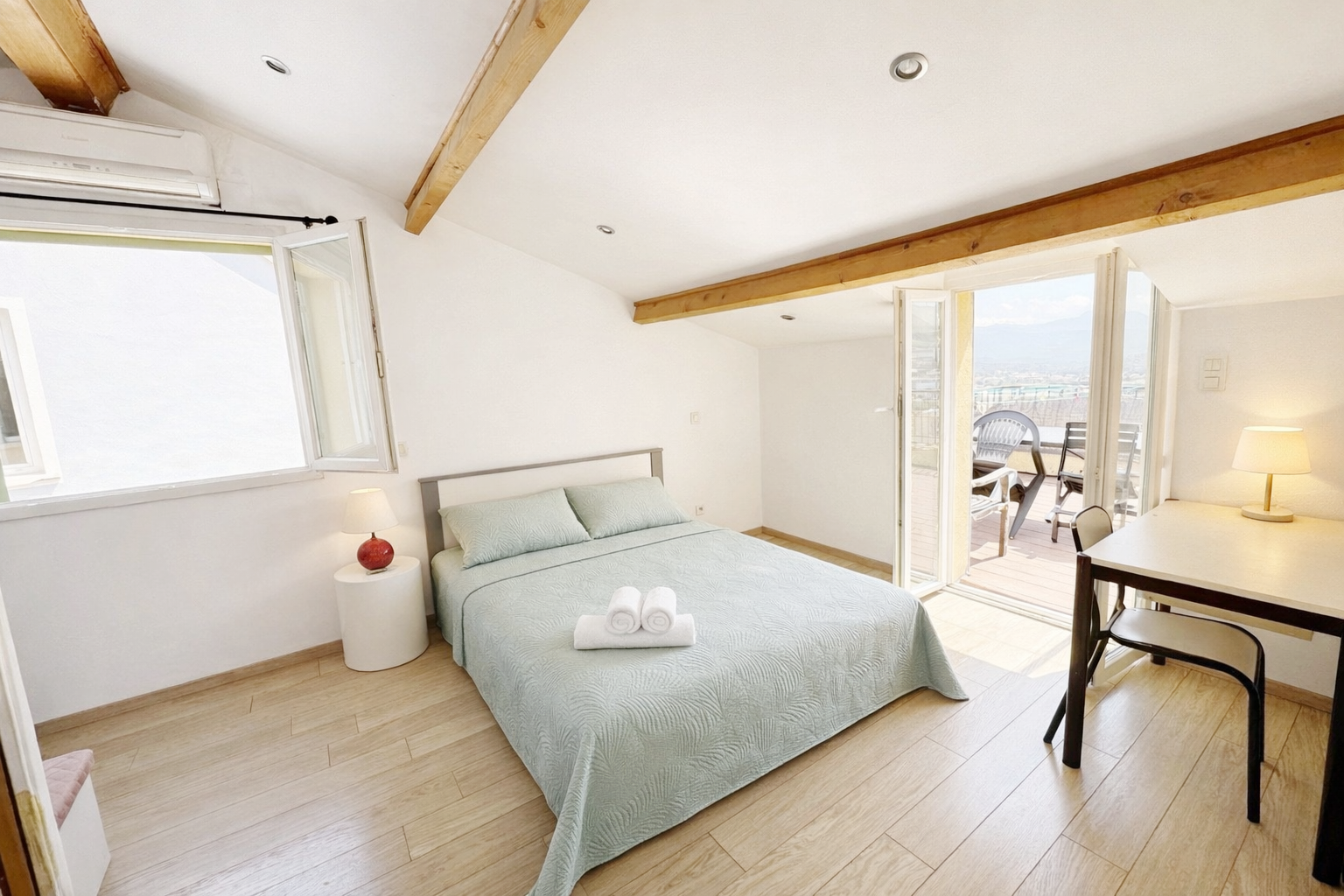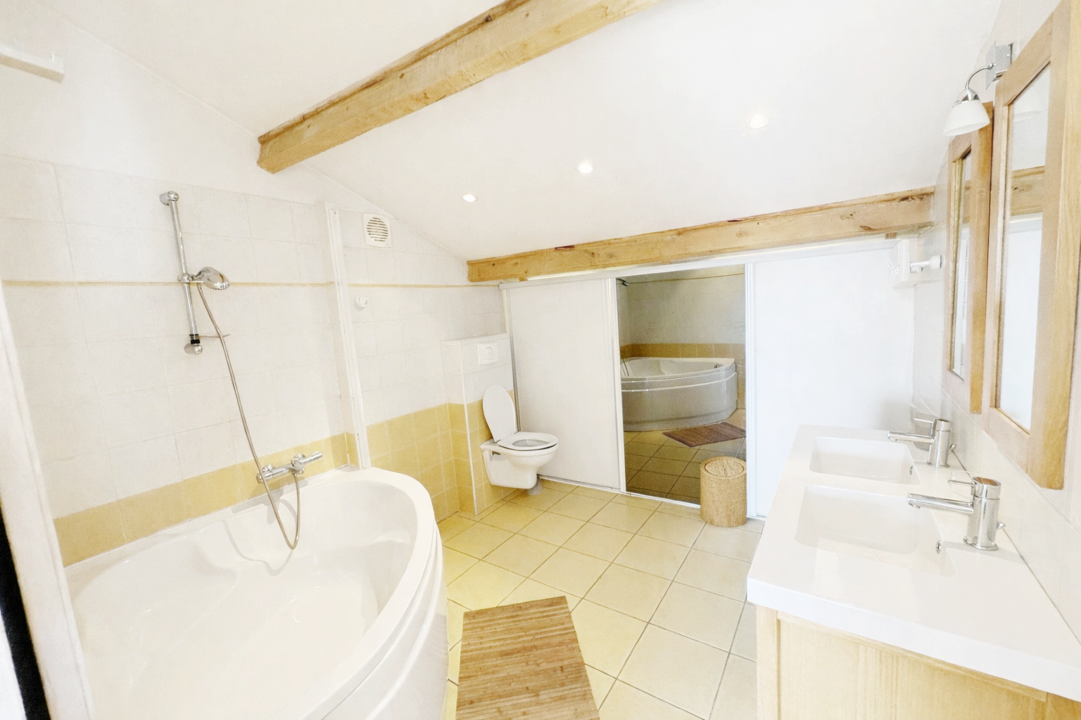 Ce superbe appartement en duplex alliant le charme de l’ancien au confort moderne comprend : un vaste séjour, une cuisine entièrement équipée, 3 chambres, 2 salles de bains (avec douche italienne et grande baignoire d’angle), 2 wc, une pièce à usage de bureau, un dressing, un cellier/buanderie, un balcon et une grande terrasse offrant une belle vue dégagée