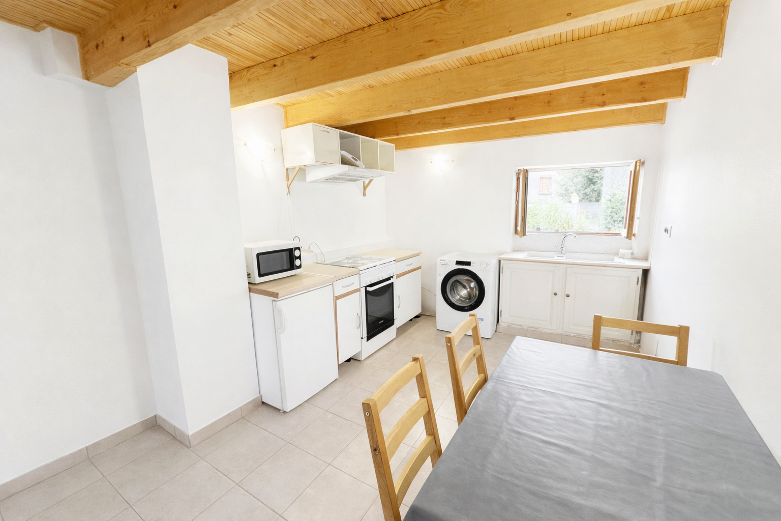 Entièrement meublé et équipé : canapé, lit en 140, , plaques de cuisson, four, micro-onde, réfrigérateur, machine à laver…