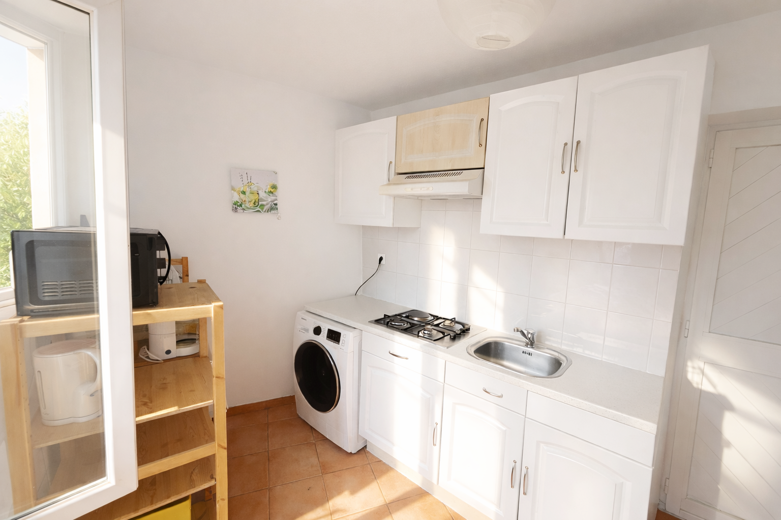 Un appartement de type T2 se composant comme suit : un séjour, une cuisine équipée, une chambre, une salle de bains/wc , une buanderie et un petit espace extérieur