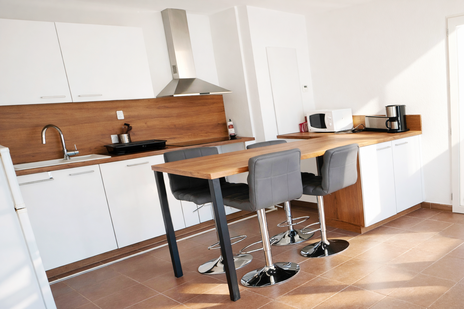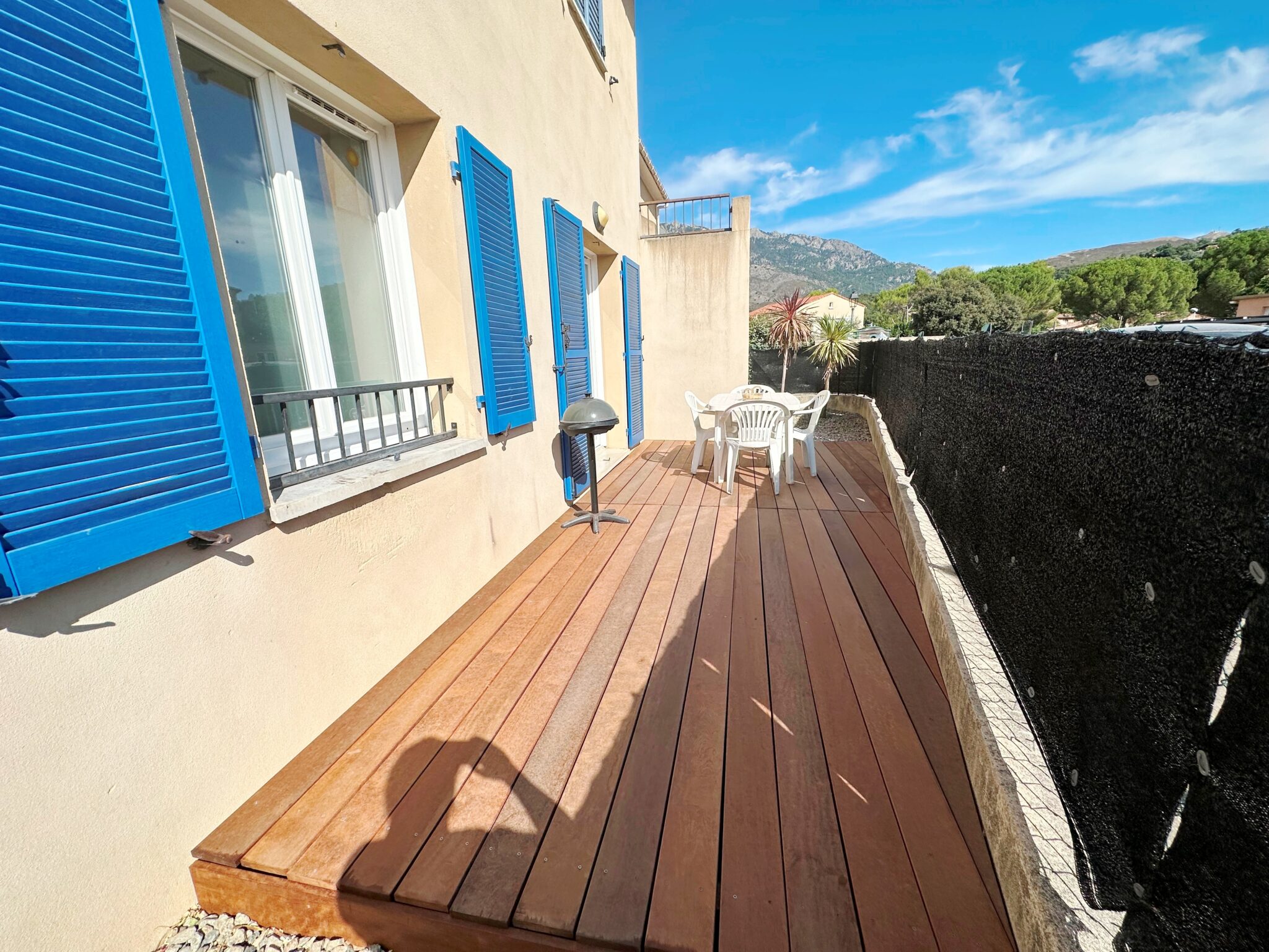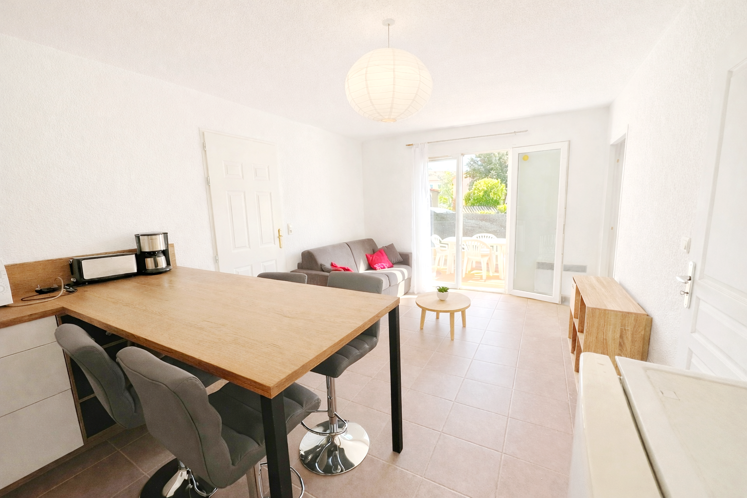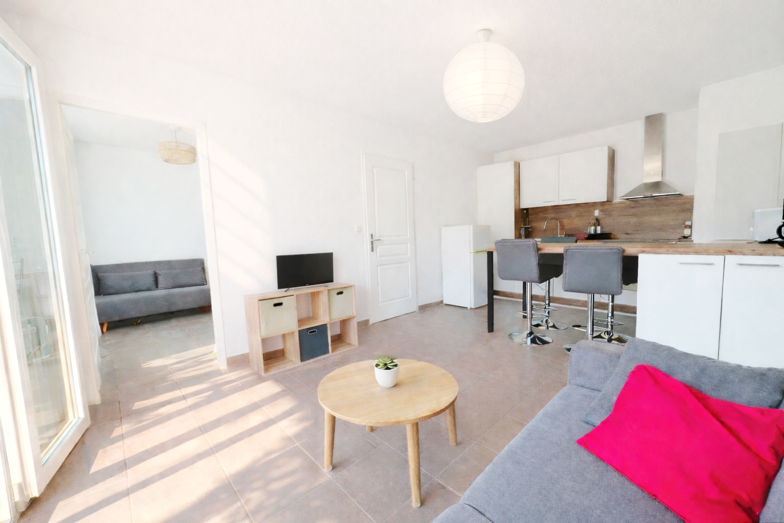 Un appartement de type T3 comprenant un séjour ouvert sur cuisine entièrement équipée, 2 chambres, une salle de bains/wc, une terrasse et un jardinet privatif entièrement clos