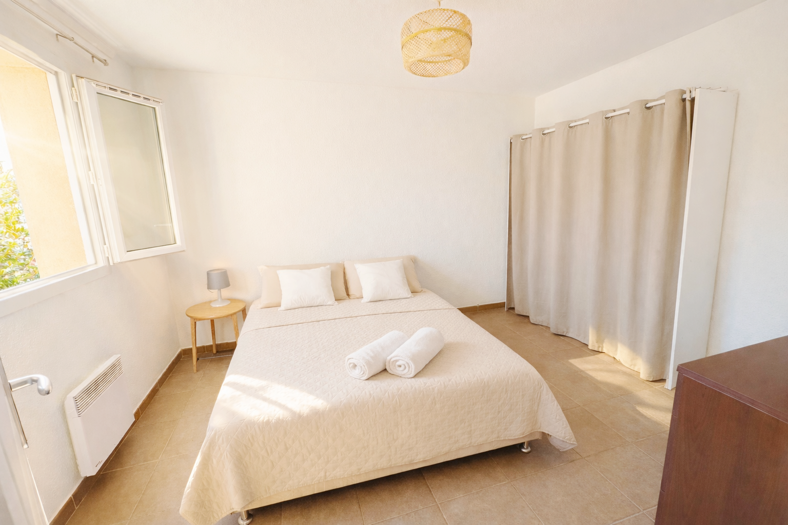 Entièrement meublé et équipé : canapé, lit, penderie, réfrigérateur, four, micro-onde, lave-vaisselle, machine à laver, TV …