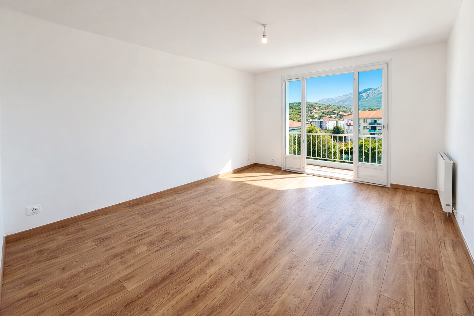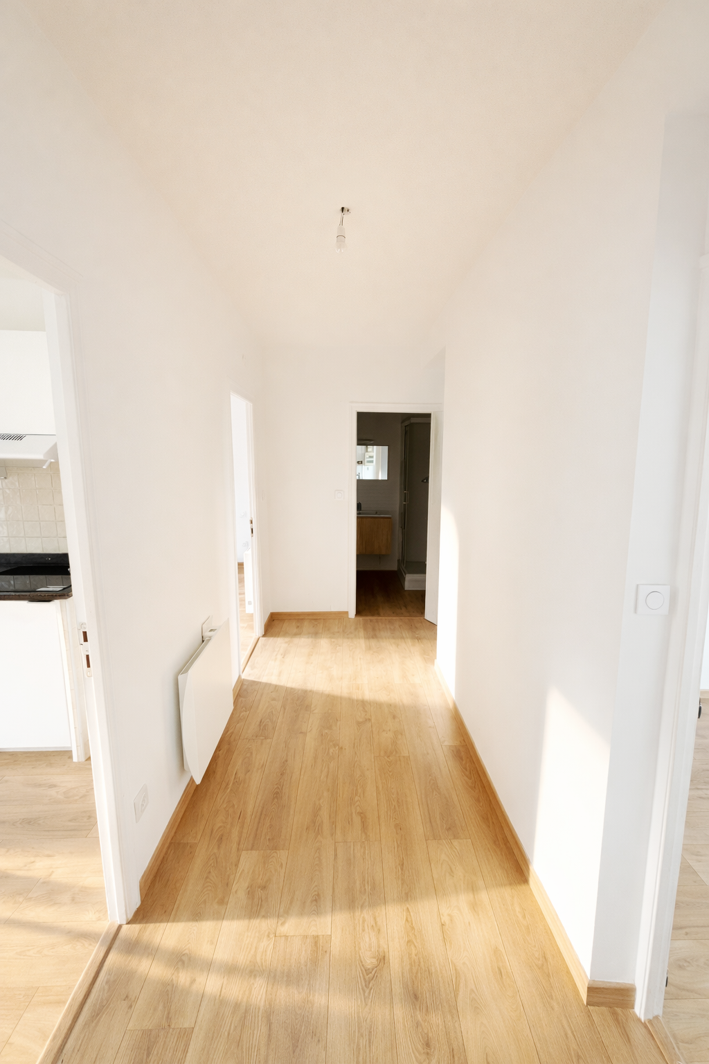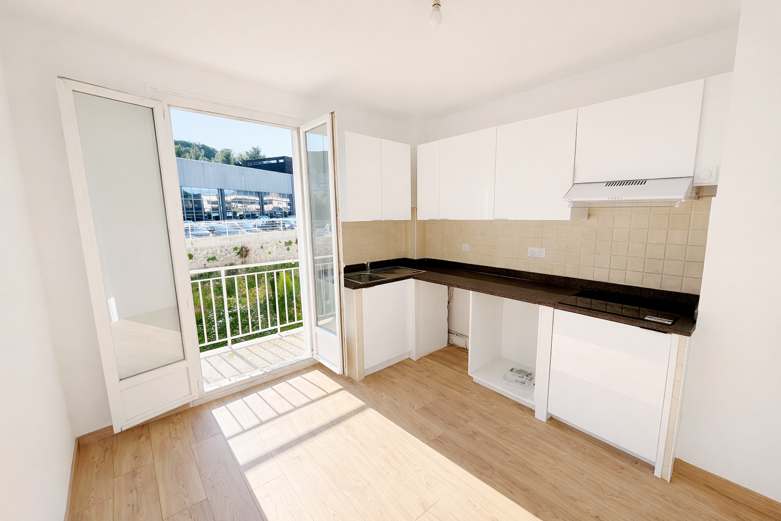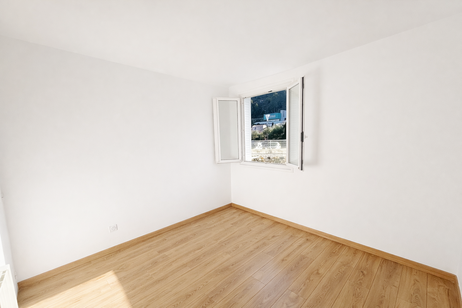 Un appartement de type T3 entièrement rénové comprenant une entrée, un séjour, une cuisine semi équipée, 2 chambres (dont une avec placard mural), une salle de bains/ wc, 2 terrasses et une cave