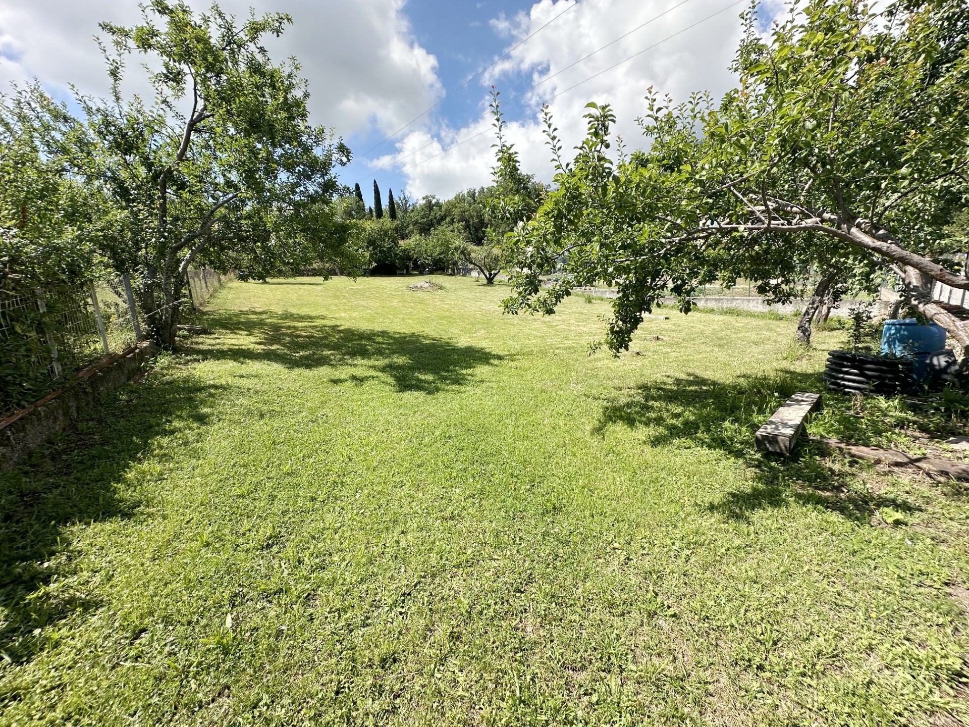 . un grand jardin privatif clos de 1500 m² avec table et chaises d’extérieur, étendoir… (partagé avec un autre logement