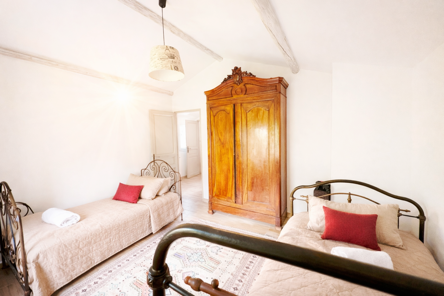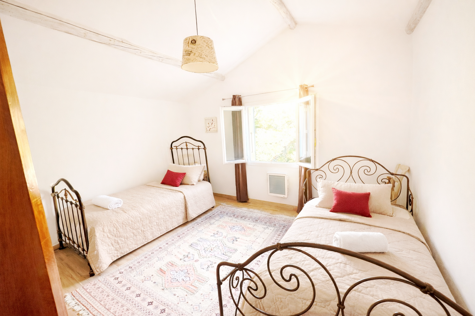 . 2 chambres (une avec 1 lit 2 places et l’autre avec 2 petits lits, penderies…)