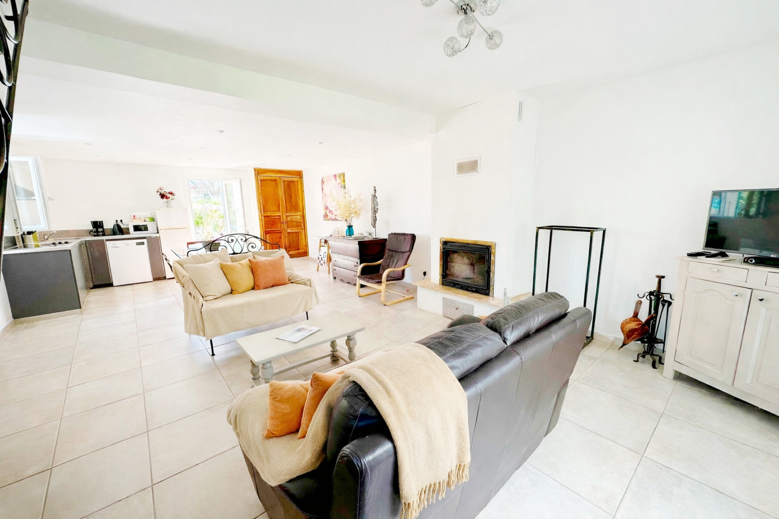 . Un grand séjour/salle à manger lumineux (Cheminée/insert, canapé convertible 2 places, grande table, TV…) ouvert sur