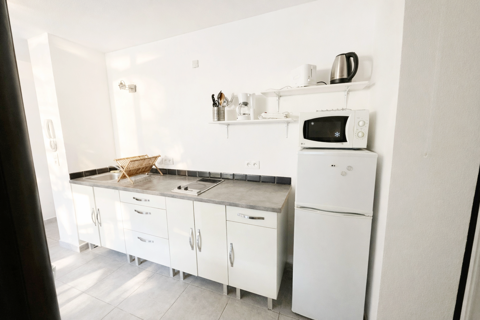 Les produits de base (papier-toilette, essuie-tout, savon, liquide-vaisselle, sel, poivre…), le nécessaire ménage, ainsi que les draps et serviettes de bains sont fournis.