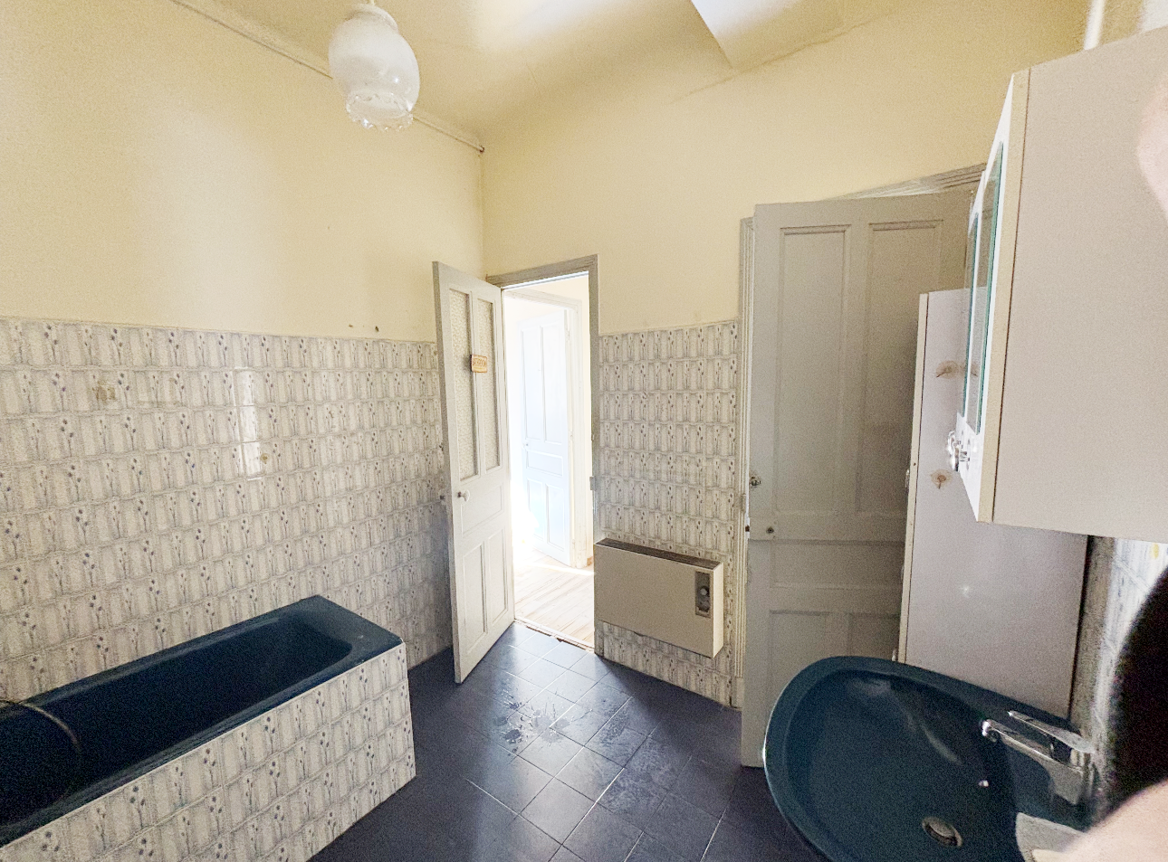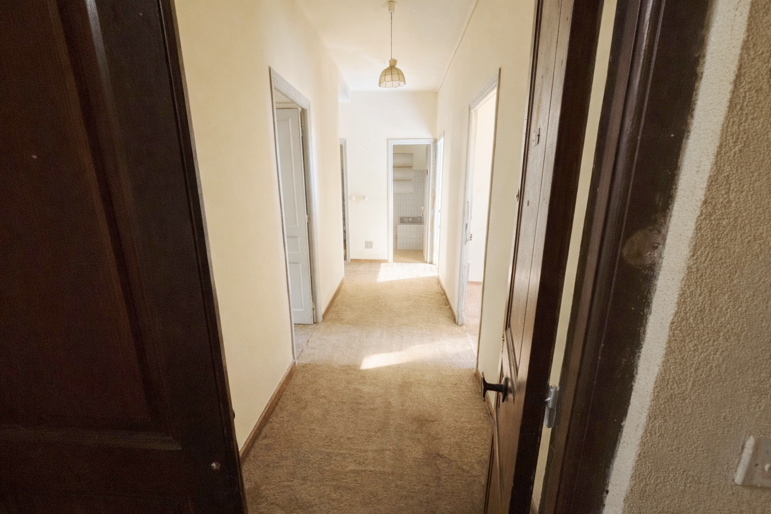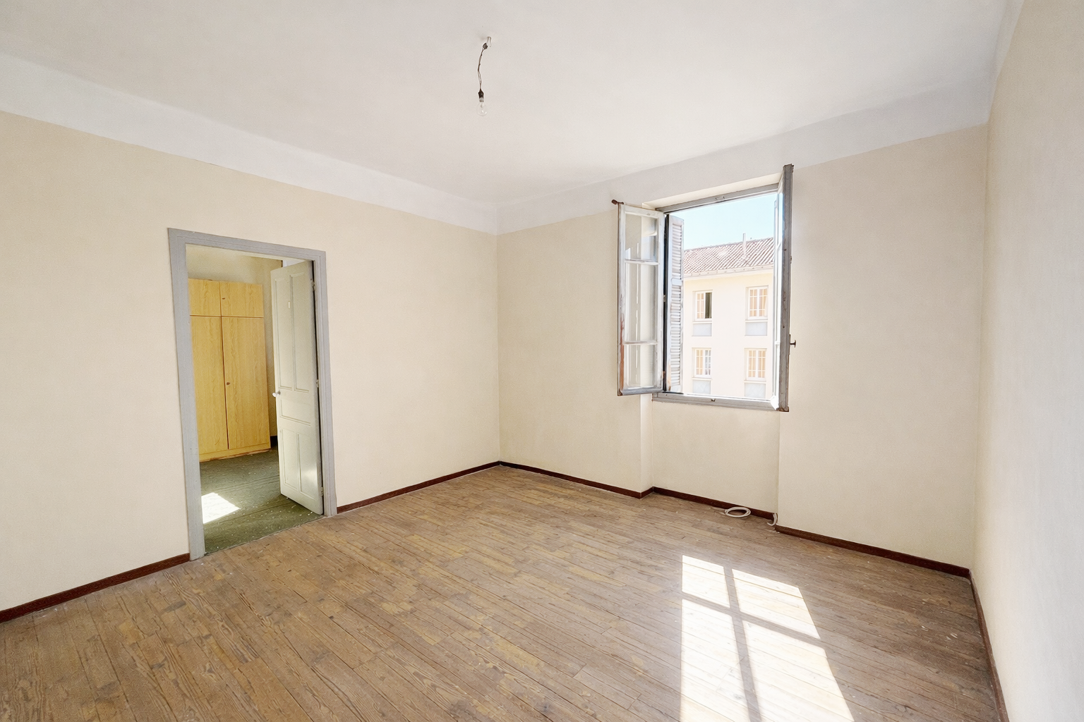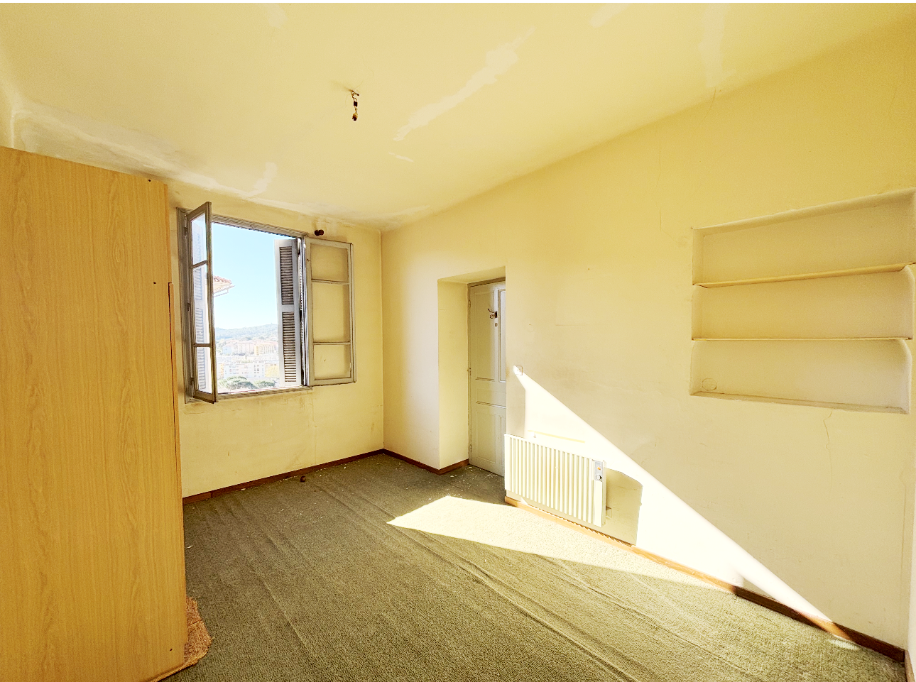 Un appartement de type T4 traversant comprenant une entrée, un séjour, une cuisine, 3 chambres, une salle de bains/wc, 2 balcons et une cave