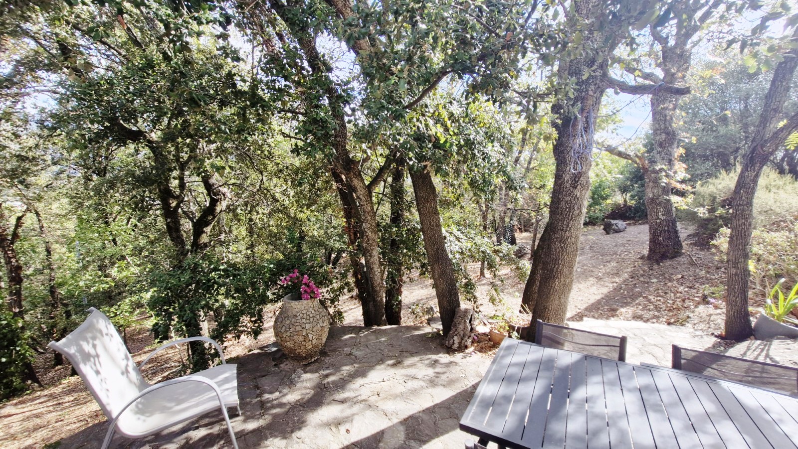 Située à la sortie Sud de Corte, cette belle propriété arborée de 7970 m² offre un cadre verdoyant et paisible tout en restant proche des commodités.