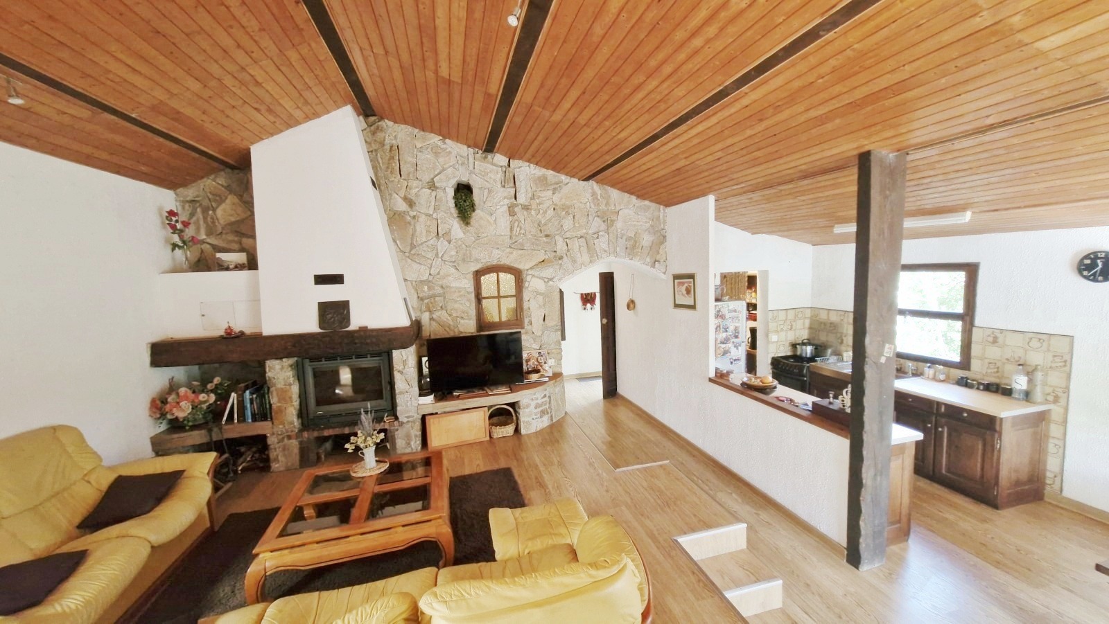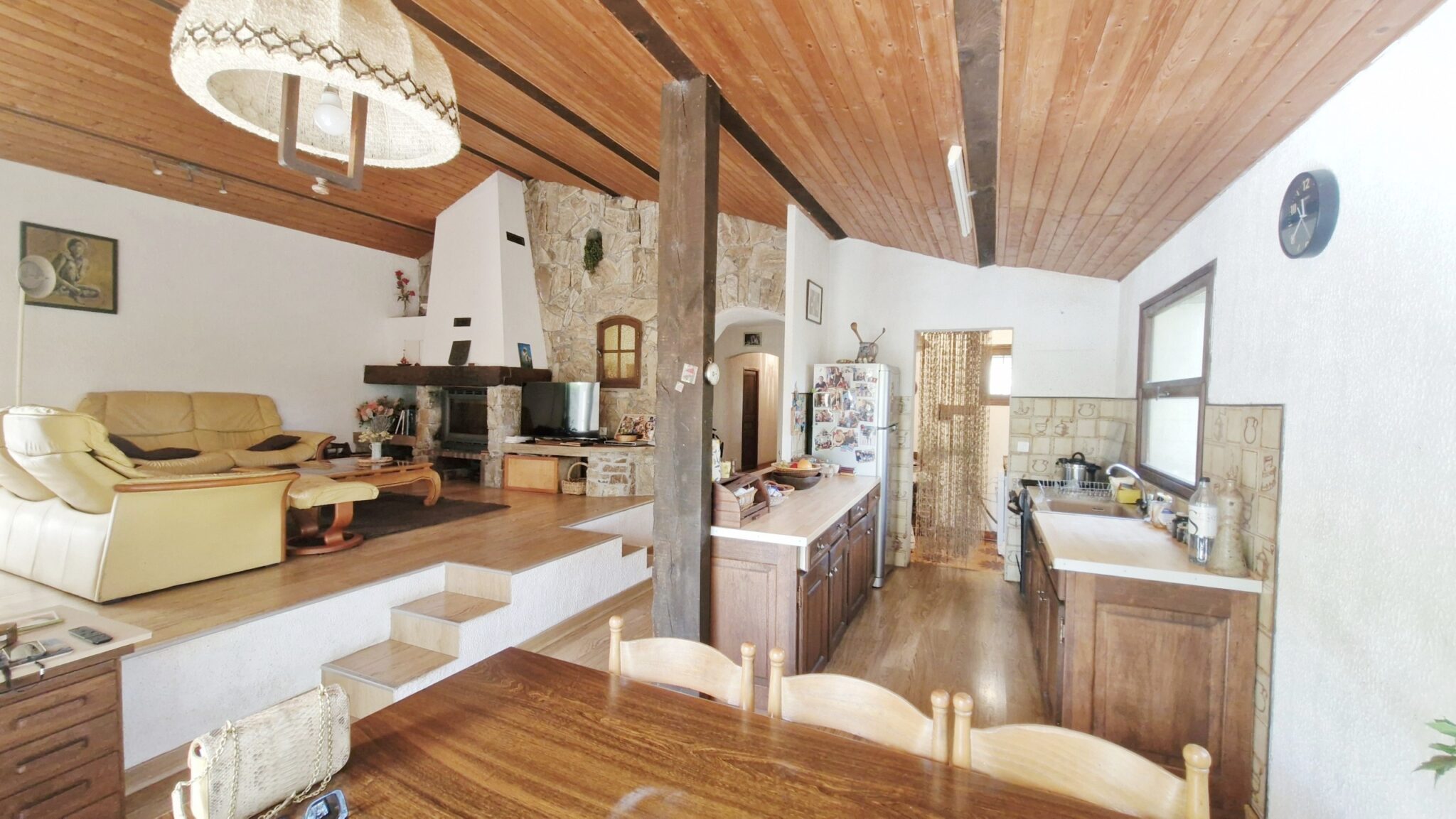 . un vaste séjour traversant avec cheminée et climatisation